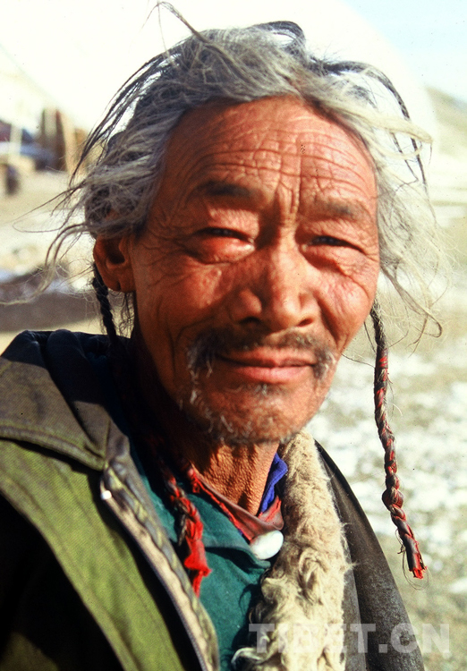 這是雙湖辦事處嘎措鄉(xiāng)老牧人扎巴(唐召明2001年攝)