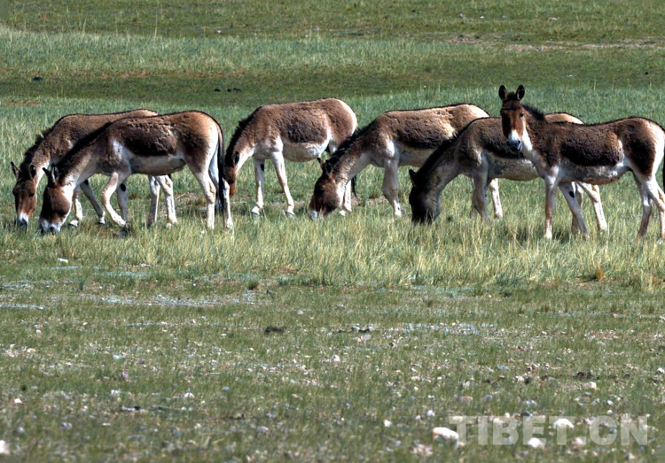 藏野驢,每年7月份為交配期,時間持續(xù)一個月。交配無固定場所。第二年7月份產崽。它們喜歡群居生活,少則四五頭,多則成百上千頭一起活動,為藏北草原最常見的大型動物。