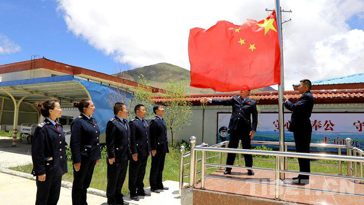 圖為錯(cuò)那縣稅務(wù)局升國旗儀式 攝影:張福東