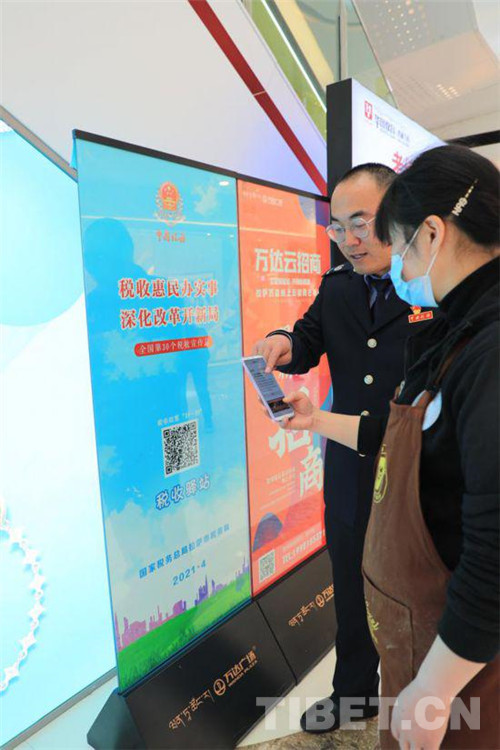 圖為西藏自治區(qū)稅務(wù)系統(tǒng)工作人員幫助納稅人辦理業(yè)務(wù)