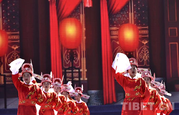 圖為2021雅礱文化旅游節(jié)開幕式文藝演出現(xiàn)場(chǎng),山南市第二高級(jí)中學(xué)學(xué)生表演黃梅戲《女駙馬》選段 攝影:王媛媛