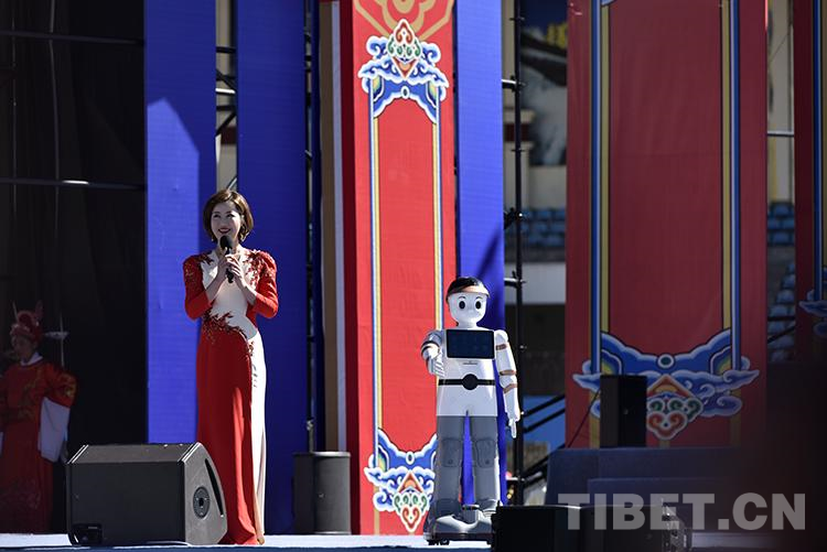圖為2021雅礱文化旅游節(jié)開幕式文藝演出現(xiàn)場(chǎng),主持人與機(jī)器人互動(dòng) 攝影:王媛媛