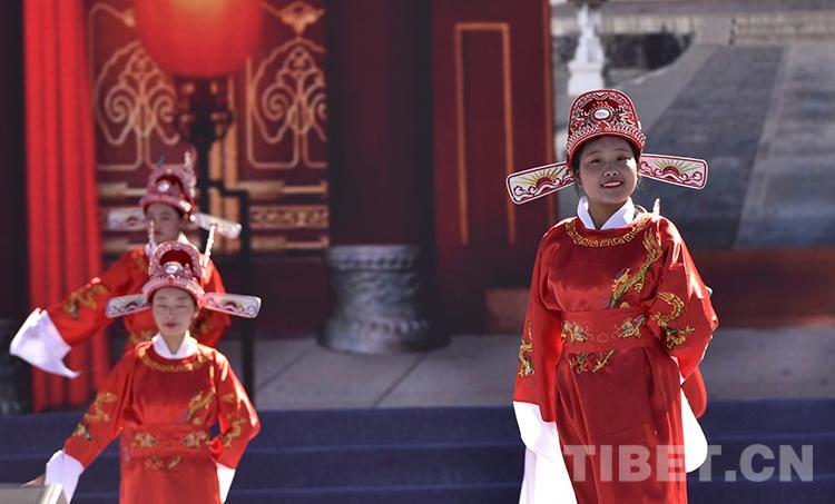 圖為2021雅礱文化旅游節(jié)開幕式文藝演出中,山南市第二高級中學(xué)生們表演黃梅戲《女駙馬》選段 攝影:王媛媛