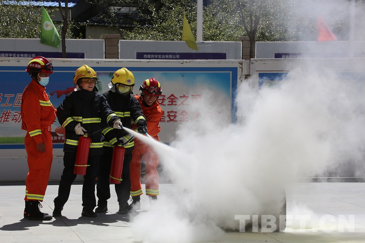 圖為拉薩邊檢站民警進(jìn)行消防器材實(shí)操 攝影:王佳豪