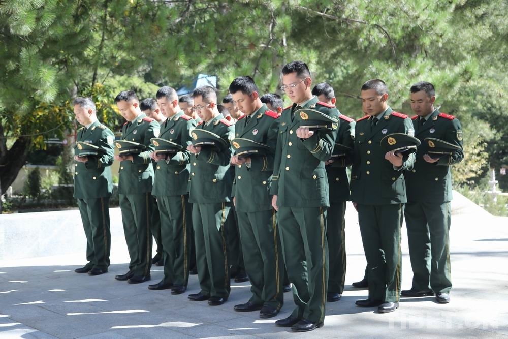 圖為武警第二機(jī)動(dòng)總隊(duì)某支隊(duì)向革命烈士默哀致敬