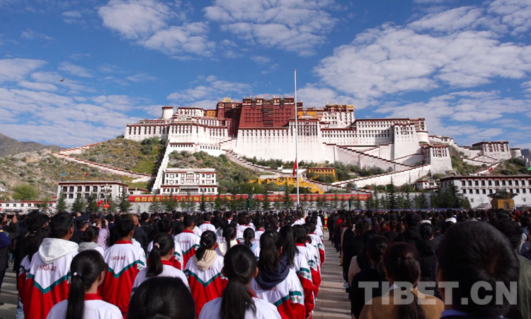 中國西藏網(wǎng)訊 10月1日的清晨,天空彩霞漫天、街道紅旗招展,西藏自治區(qū)慶祝中華人民共和國成立72周年“升國旗、唱國歌”儀式在拉薩市布達拉宮廣場舉行。