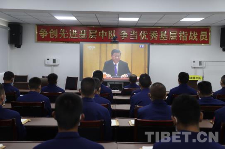 圖為那曲市森林消防大隊山南駐防分隊組織觀看紀(jì)念辛亥革命110周年大會直播