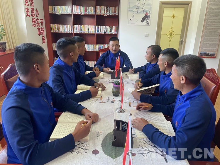 圖為那曲市森林消防大隊山南駐防分隊圍繞大會展開學(xué)習(xí)討論