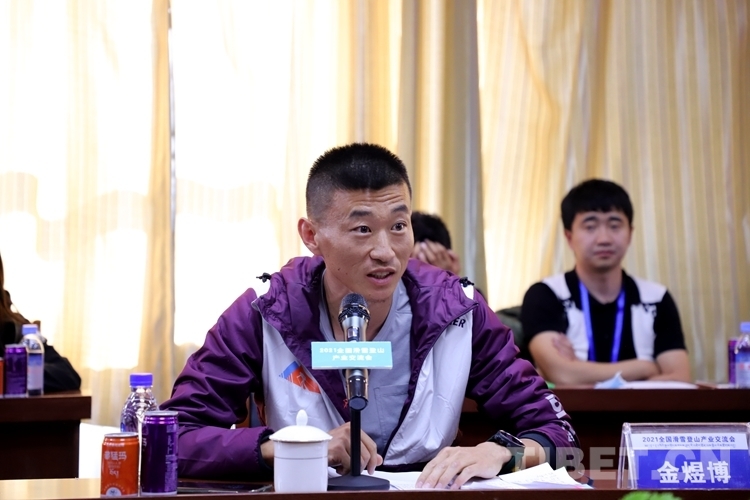 圖為滑雪登山國家青年隊(duì)教練金煜博作交流發(fā)言
