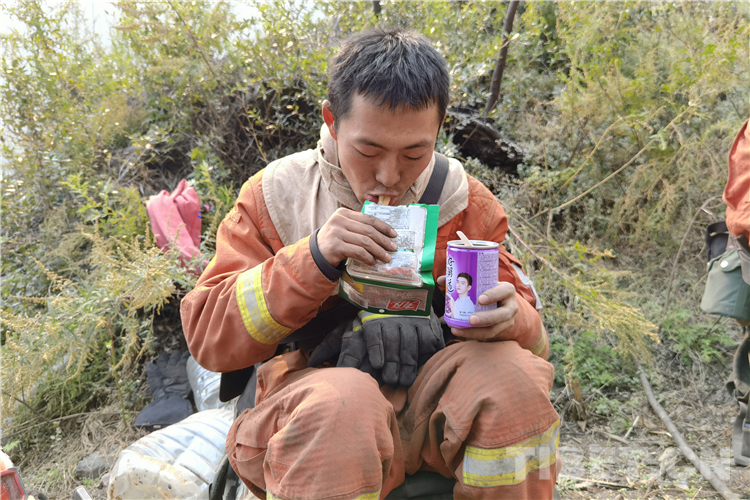連日來,在火場上,席地而睡的消防員和寧吃干糧不拿群眾“一針一線”的消防員隨處可見。(中國西藏網(wǎng) 通訊員/張強(qiáng) 夏明勇)