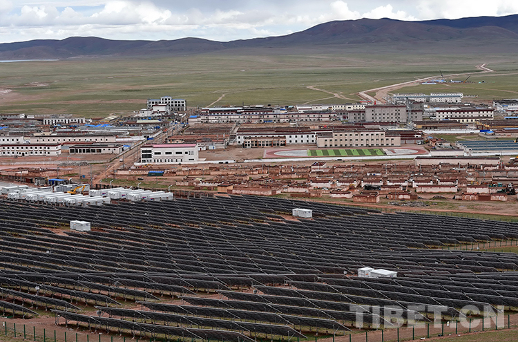 這是雙湖縣城新貌。前景是光伏電站成片的發(fā)電電池板(唐召明2017年7月25日攝)