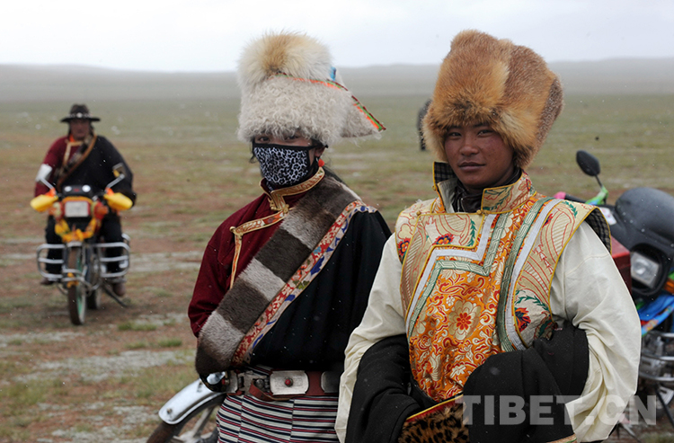這是兩位青年牧民著盛裝參加雙湖縣的“撤區(qū)建縣”慶祝活動(dòng)(唐召明2013年7月26日攝)