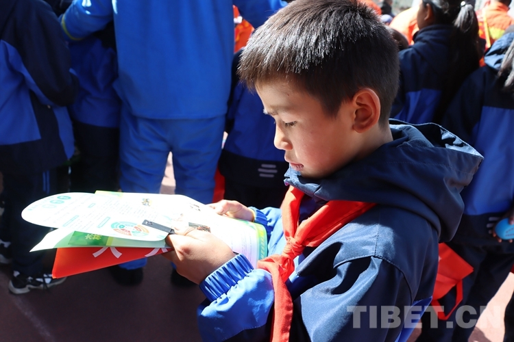 該小學相關負責人表示,通過森林火災安全宣傳教育活動,進一步提升了全校師生的森林防火意識,提高了大家保護生態(tài)的安全意識。圖為小學生閱讀消防員發(fā)放的宣傳冊 (中國西藏網(wǎng) 通訊員/張林)