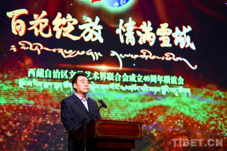 西藏自治區(qū)黨委常委、宣傳部部長汪海洲出席聯(lián)誼會并講話,西藏自治區(qū)文聯(lián)黨組書記、副主席段勝前致開幕詞,西藏自治區(qū)副主席多吉次珠,西藏自治區(qū)政協(xié)副主席、區(qū)文聯(lián)主席扎西達娃等相關(guān)領(lǐng)導(dǎo)及西藏自治區(qū)各有關(guān)廳局、社團組織代表、7地市文聯(lián)、區(qū)文聯(lián)11個文藝家協(xié)會的主席團成員、老藝術(shù)家代表、“文藝兩新”組織代表等200多人參加活動。中國文聯(lián)、中國作協(xié)、各兄弟省、市、自治區(qū)文聯(lián)向區(qū)文聯(lián)成立40周年發(fā)來賀信。