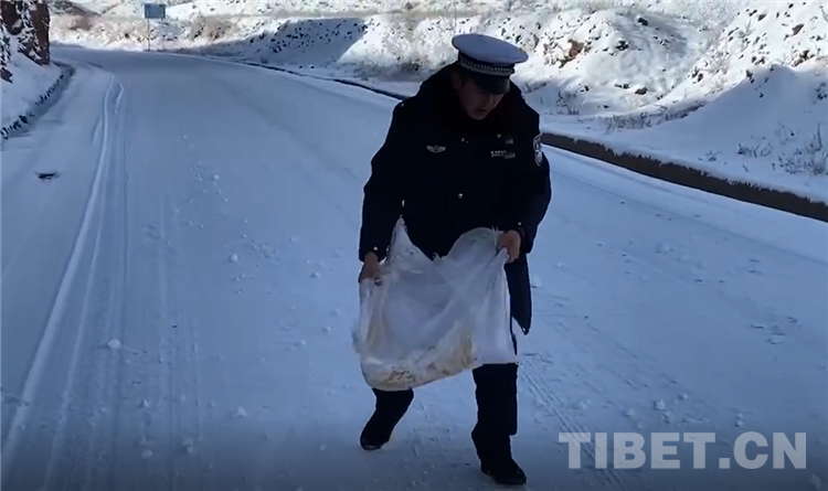 2018年3月,國道317突然遭遇了暴雪天氣,許多群眾和車輛被困在了矮拉山山頂,扎西四郎跟著隊友們在零下三十多度的惡劣環(huán)境下堅守了28天。令扎西四郎印象最深刻的是有一次,因為車子沒辦法通行,隊長指揮民警帶群眾下山。當(dāng)時,有一位要去拉薩的老奶奶腿腳不方便,她自己根本就沒辦法走動,扎西四郎就和桑珠一起輪流背著老人下山,雖然中間滑倒了幾次,可還是把老人背到了能通車的安全位置,老人為了表達(dá)感激,還專門給他們留下了拉薩的住址和聯(lián)系電話。