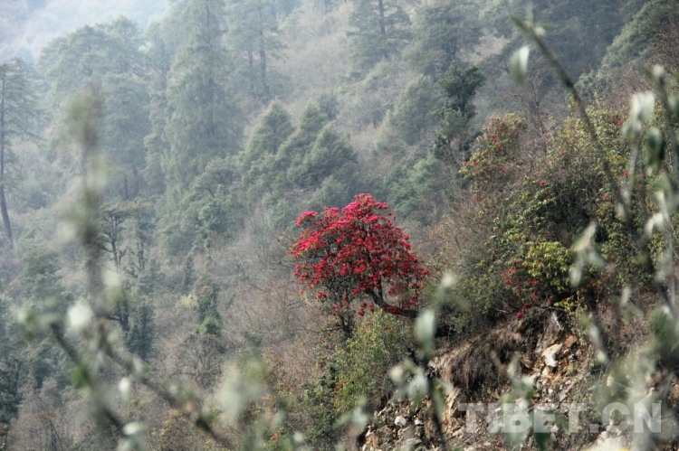 只見(jiàn)萬(wàn)綠叢中一樹(shù)高山杜鵑盛開(kāi)似火,