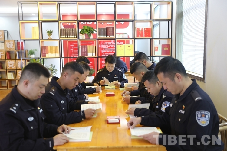 圖為林芝邊境管理支隊機關(guān)民警閱讀紅色書籍 攝影:柳春偉