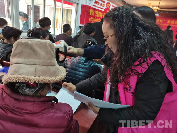 圖為工作人員為城關鎮(zhèn)四川橋社區(qū)群眾作講座