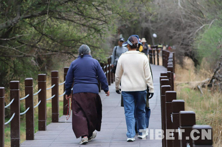 圖為拉薩市民在“拉魯濕地”游玩 攝影:王魯鎮(zhèn)
