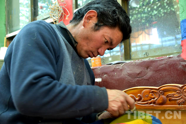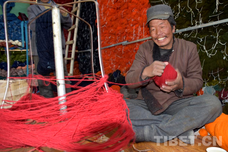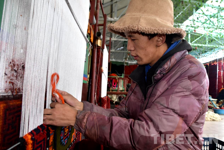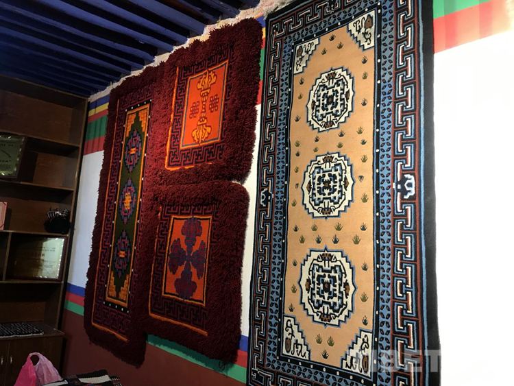 “剛到合作社每天工資160元,一個月下來就有小四千,一年收入妥妥的超3萬元?!闭f話間,巴頓也沒有歇下手中的活計。穿桿結(jié)扣,勤勞的雙手一直忙碌著,在合作社6年多,他已經(jīng)比較熟練地掌握了卡墊織法、色彩以及紋樣。如今,卡墊接活都是以承包方式,往往供不應求,一家人住在裝修一新的藏式小院里,妻子現(xiàn)在也在參加合作社新員工培訓,四個孩子都進了公立學校讀書,享受了義務教育免費“三包”政策。