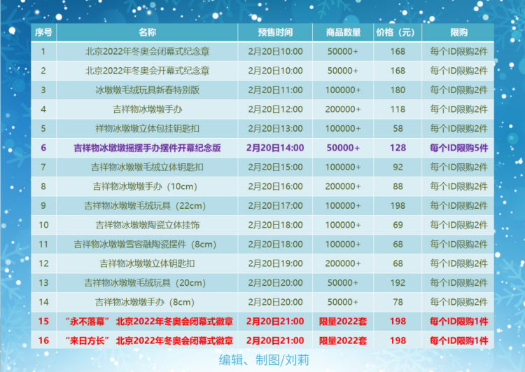 記者整理出了2月20日開放預(yù)售的所有特許商品的有關(guān)情況,此前遺憾沒能擁有冰墩墩的網(wǎng)友們,這次應(yīng)該有望實(shí)現(xiàn)“一戶一墩”。