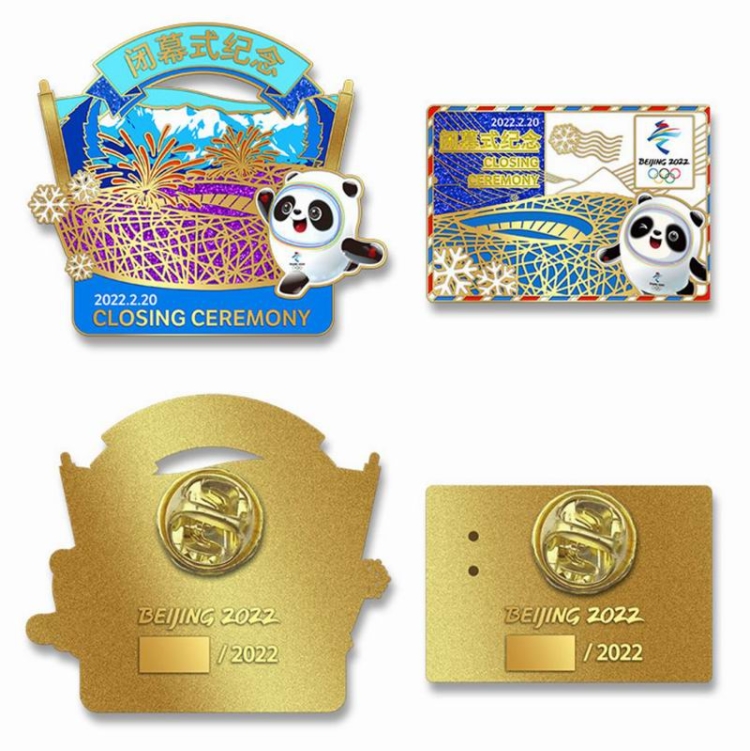“永不落幕”北京2022年冬奧會(huì)閉幕式徽章一套兩枚,專門注明是線上專供款。兩枚徽章都以吉祥物冰墩墩、國(guó)家體育場(chǎng)“鳥巢”為主體,飾以雪山、雪花等,材質(zhì)均為鋅合金,采用軟琺瑯、金蔥粉印刷,以三折卡紙包裝,限量2022套。不規(guī)則形徽章高5cm、寬5.6cm,寓意賽事圓滿落幕;長(zhǎng)方形徽章高3.1cm、寬4.5cm,以明信片造型表達(dá)了中國(guó)向世界展示冬奧會(huì)精彩賽事的愿望。