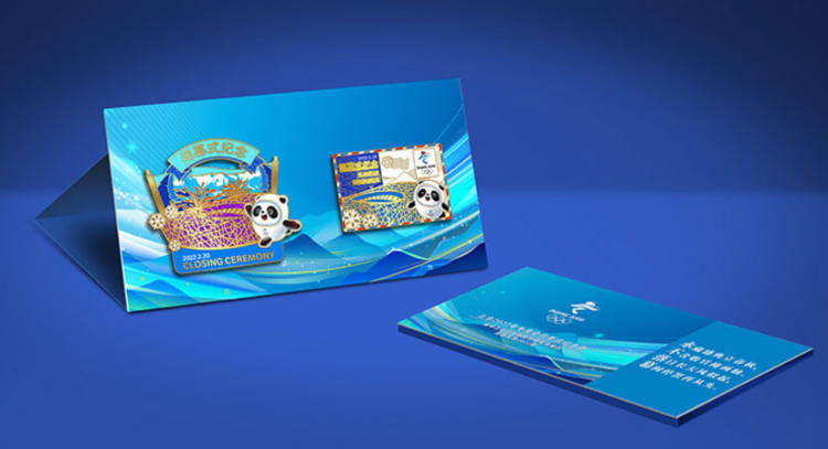 圖為“永不落幕”北京2022年冬奧會(huì)閉幕式徽章包裝展示 圖片來源:奧林匹克官方旗艦店