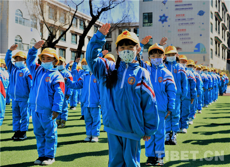 中國西藏網(wǎng)訊 太陽伴隨著初春的微風冉冉升起。新的學期又開始了,3月10日早上,風和日麗,陽光明媚,學生們穿著整潔的校服,戴著鮮艷的紅領(lǐng)巾,來到學校,興高采烈地期待著新學期特殊的升旗儀式。應(yīng)拉薩市第一小學邀請,拉薩警備區(qū)某團官兵早早出發(fā)前往學校,官兵們整齊的步伐、筆挺的身影、颯爽的英姿感染著一小學子。