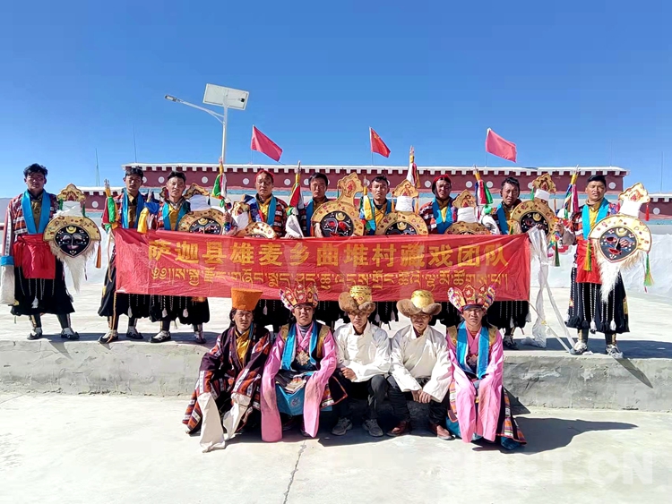 2022年,在大家的共同努力下,曲堆藏戲被評為縣級非物質文化遺產,薩迦縣文化局撥給他們2萬元資金,解決曲堆藏戲隊購買演出《朗薩雯蚌》服裝、道具問題。
