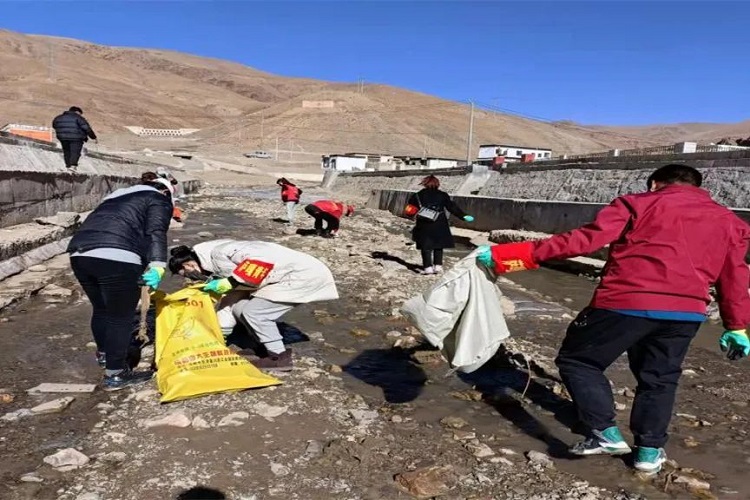 薩嘎縣團縣委聯(lián)合縣總工會、縣婦聯(lián)組織本縣青年志愿者在加布河沿線開展“世界水日”之“‘河’我一起,保護母親河”凈灘活動,西部計劃志愿者、青年志愿者共30余人參與。