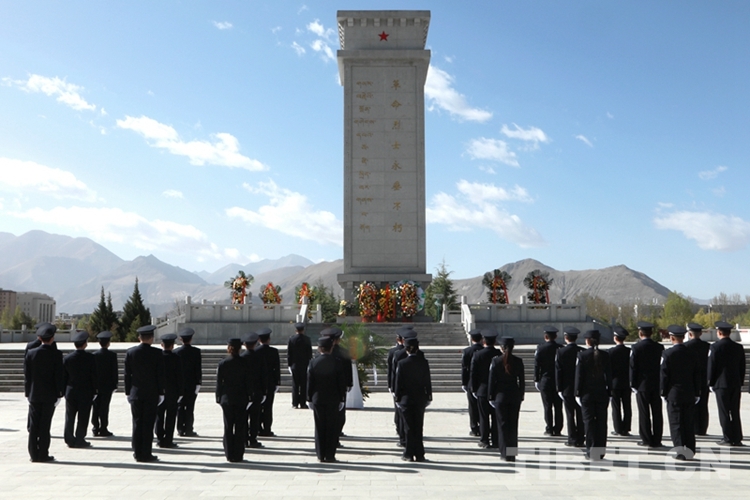 圖為西藏邊檢總站執(zhí)法調(diào)查支隊(duì)民警在拉薩烈士陵園開(kāi)展祭奠活動(dòng) 攝影:劉明陽(yáng)