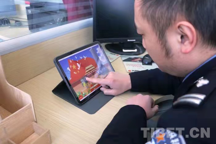 圖為西藏邊檢總站執(zhí)法調(diào)查支隊(duì)民警通過(guò)網(wǎng)上獻(xiàn)花向英烈表達(dá)敬意、寄托哀思 攝影:劉文