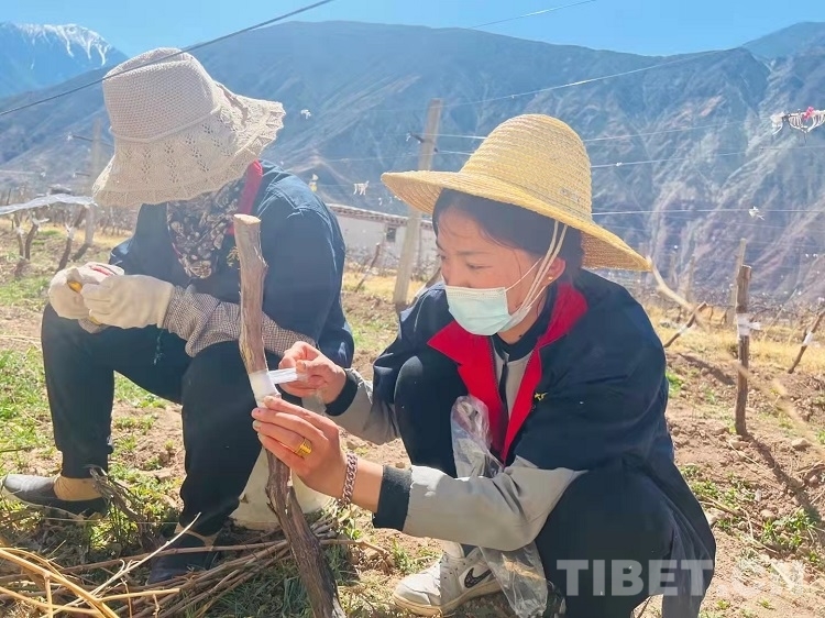 春到高原,萬物復(fù)蘇,葡萄樹慢慢地長出了嫩綠嫩綠的小芽,經(jīng)過幾天進(jìn)化,葉子變成了綠色。在一望無際的葡萄園里,西藏自治區(qū)芒康縣納西民族鄉(xiāng)勤勞的人們開始了新一年的奮斗,他們正在嫁接新品種玫瑰蜜,小心翼翼,不斷嘗試,努力不會騙人,大自然的土地、陽光和水分,在金秋時節(jié),會給予人們最豐厚的饋贈!(中國西藏網(wǎng) 通訊員 梁俠 曲措)
