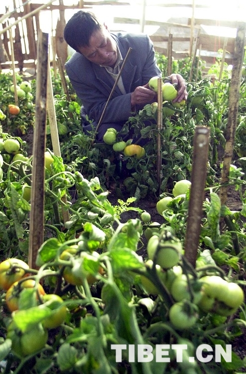 種植蔬菜的胡少南是位50多歲的復(fù)員軍人。他曾在四川農(nóng)村種過菜,幾年前到申扎縣做泥瓦匠的時候,看到這里群眾長年吃不到新鮮蔬菜,便萌發(fā)了種植大棚蔬菜的想法。于是,他投資20多萬元建起了蔬菜大棚。用羊糞作肥料,通過燒火來提高棚內(nèi)溫度,逐漸解決了高海拔地區(qū)種植蔬菜難的問題。