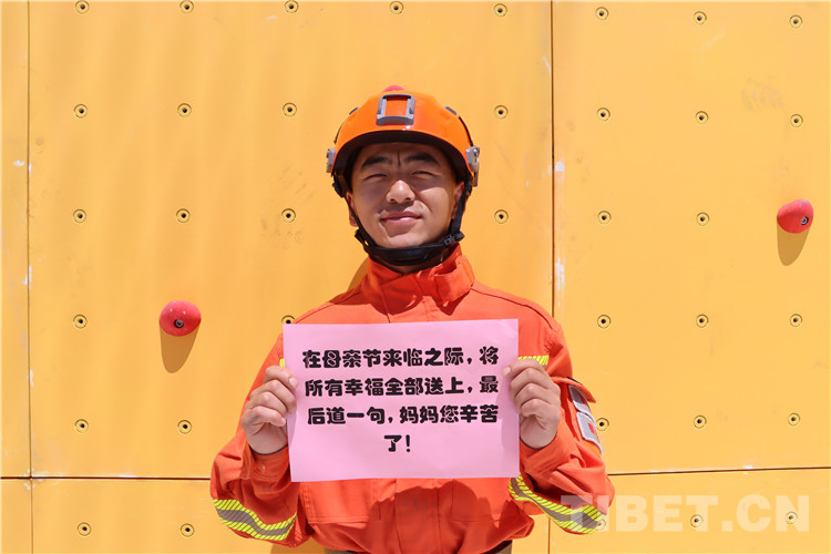 藏族消防員邊瑪桑堆對(duì)他母親說:“母親節(jié)到了,我祝媽媽節(jié)日快樂!媽媽,扎西德勒!”