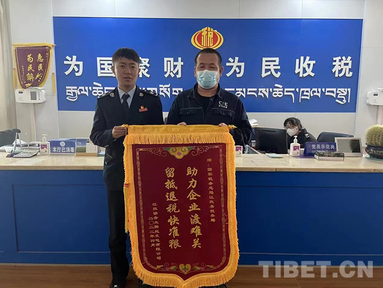 圖為國家稅務總局江孜縣稅務局收到轄區(qū)企業(yè)送來的錦旗