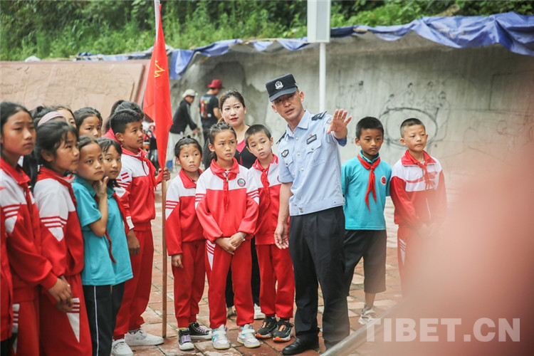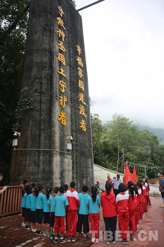 圖為背崩邊境派出所民警帶領(lǐng)學(xué)生宣讀強(qiáng)邊誓詞