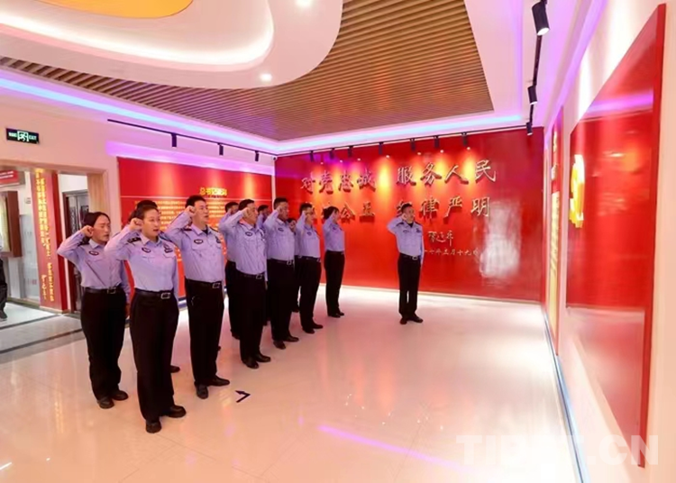 圖為黨員民警在西藏公安史展館重溫入黨、入警誓詞