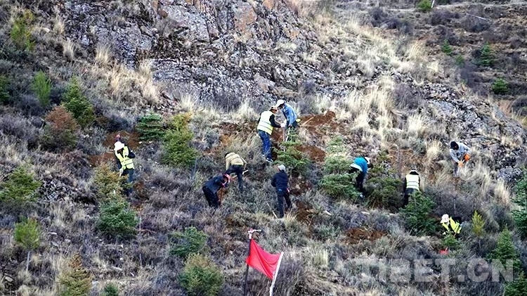 圖為2022年5月拉薩南山上工人們正在植樹 攝影:王媛媛