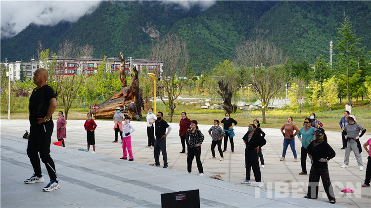 圖為林芝市工布公園早上九點跳廣場舞的場景 攝影:旦曲