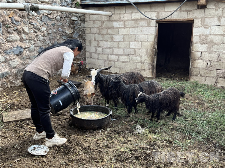 圖為拉措在喂羊 攝影:王茜