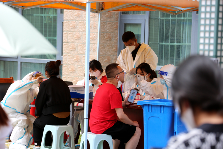 圖為位于拉薩市柳梧新區(qū)南苑小區(qū)的核酸檢測點 攝影:王佳豪