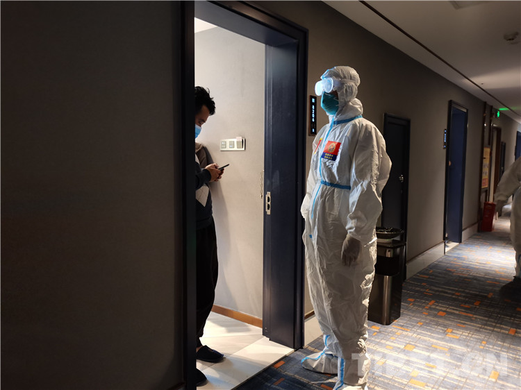 圖為日喀則大隊救援人員進入定點隔離酒店收集信息