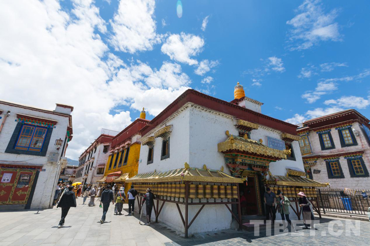“先有大昭寺,后有八廓街”。拉薩古城的中心,大昭寺殿宇巍峨,凌空御風(fēng),桑煙繚繞,金碧輝煌。大殿里供奉的釋迦牟尼十二歲等身佛像,是文成公主從長安帶來的,佛教信教群眾將其視為心目中的至寶,從春到冬川流不息地圍繞著它轉(zhuǎn)經(jīng)。千百年來,三條轉(zhuǎn)經(jīng)路的中圈——八廓街,已成為全世界獨具特色和魅力的傳統(tǒng)文化街區(qū)之一。