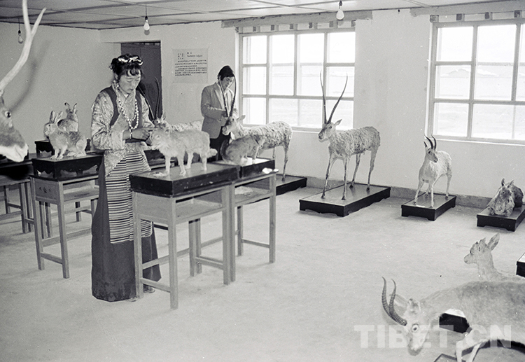 這是那曲地區(qū)(現(xiàn)那曲市)野生動物標本館的工作人員正在整理所展示的野生動物標本(唐召明1987年攝)