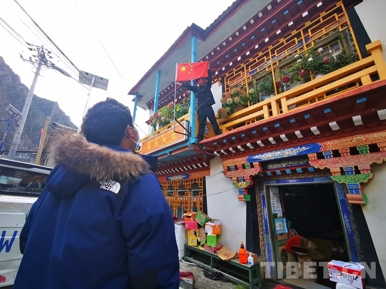 “老奶奶,我?guī)驮蹅兗野褔?guó)旗掛到門口最醒目的地方……”說著,林芝邊境管理支隊(duì)金東邊境派出所民警楊子拿著紅旗走向了卓瑪拉姆老人家門口,在老人家門口插上了耀眼的五星紅旗。