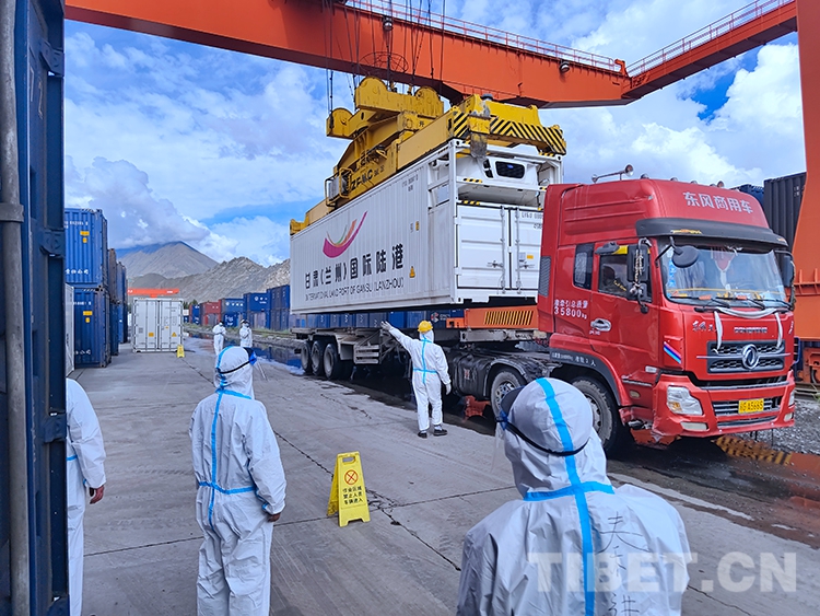 圖為拉薩車務(wù)段對到站物資進(jìn)行裝卸作業(yè)