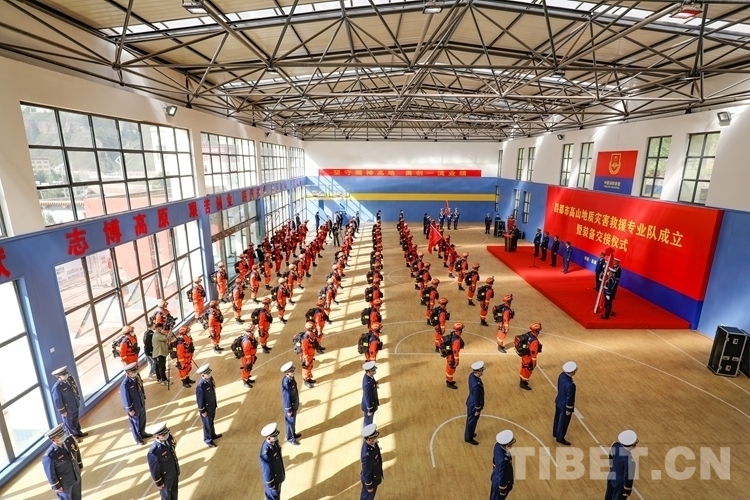圖為昌都市高山地質(zhì)災(zāi)害救援專業(yè)隊成立暨裝備交接儀式現(xiàn)場