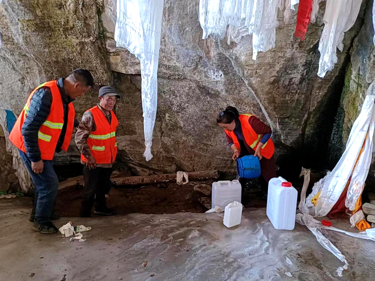 圖為亞夏帶領村護林員深入扎貢溝收集水源