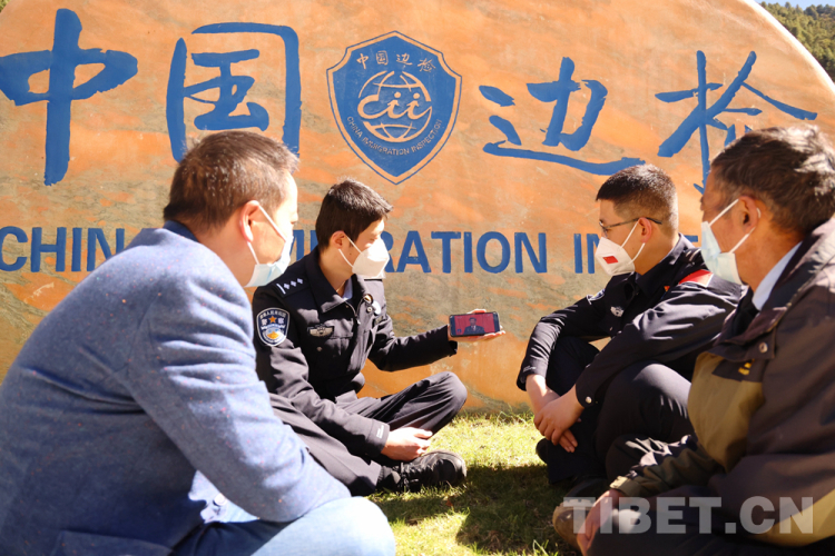 圖為吉隆出入境邊防檢查站執(zhí)勤民警在崗位上收看黨的二十大開幕會(huì) 攝影:肖富貴